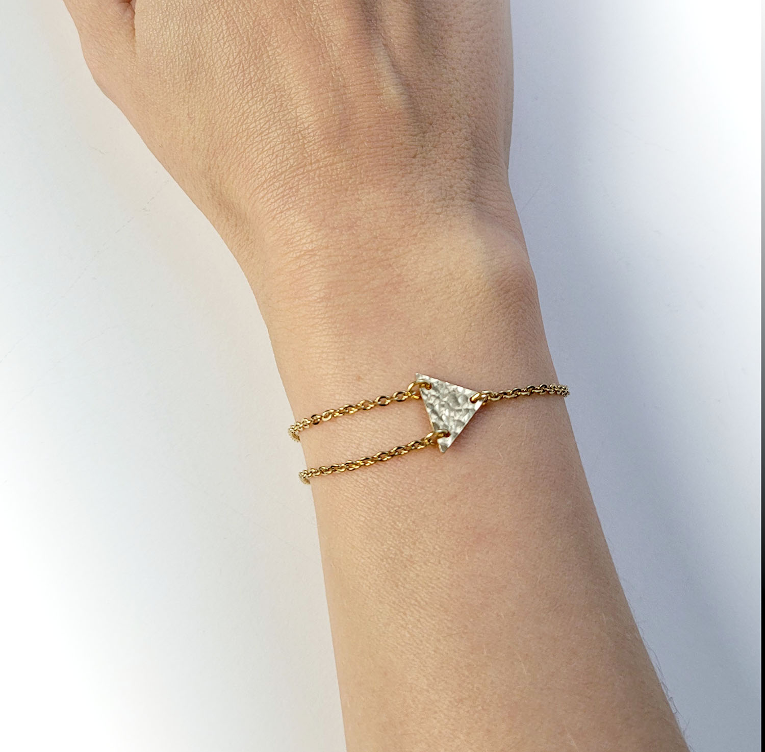 La pièce centrale du bracelet est en laiton martelé à la main puis doré à l’or fin 24 K. Chaque pièce est unique et peut présenter quelques différences avec la photo. Disponible en plusieurs versions.